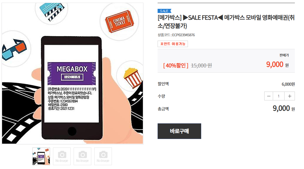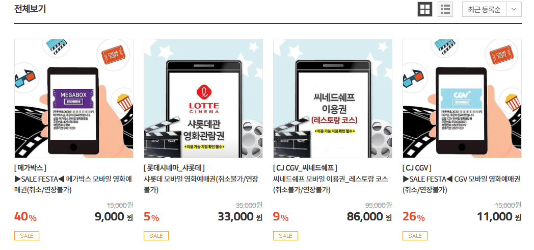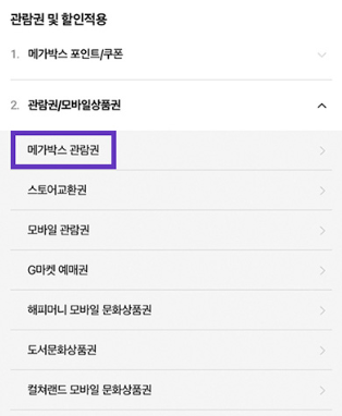 4. 관람권, 모바일상품권 > 메가박스 관람권 선택