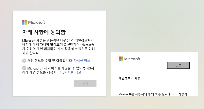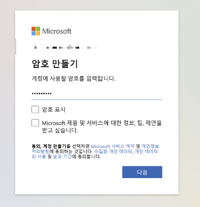 3. 계정 만들기는 개인 정보를 수집하는 방침에 동의를 하고 진행합니다.
