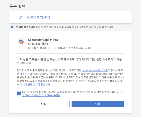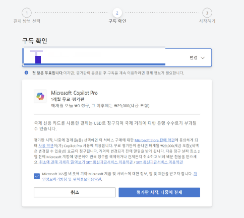 코파일럿을 한달 동안 무료로 사용하고 싶다면, 아래 단계를 따라 하세요
