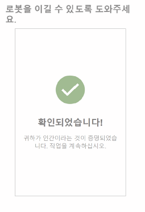 8. 로봇이 아닌지 확인하는 작업을 해야 합니다. 각도를 맞춰 오른쪽 그림을 방향에 맞게 이동해 주세요