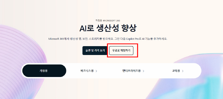 1. 코파일럿 홈페이지에서 무료로 체험하기 클릭